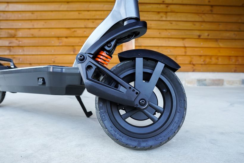 By securing one side of each swingarm in place to the mainframe of the scooter and attaching the other to the wheels to allow free movement, the swingarms pivot vertically. Ultimately, the swingarms endow it with a better ability to absorb the rattling impact of bumps and cracks in the road.