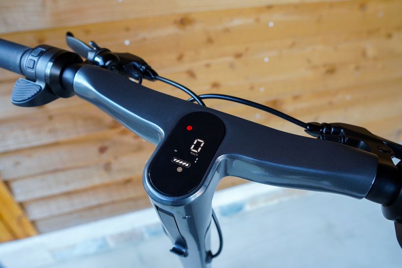 Integrated into the center of the handlebar console is a slick LED display.